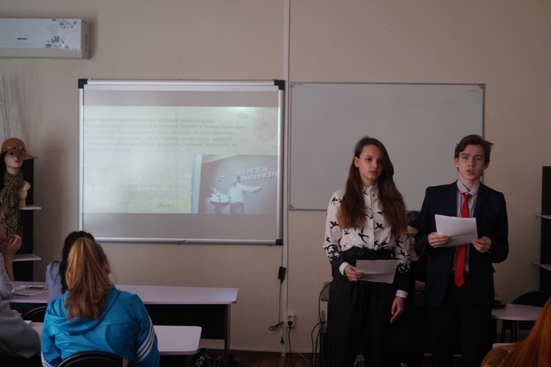 На классном часе, посвященном памяти В.С.Высоцкого студенты группы ТЭ – 114 читали стихи поэта «Братские могилы», «Полчаса до атаки», «Я не люблю», с интересом познакомились с этапами творческого пути поэта, представленным в презентации, слушали его песни, искренне сопереживали героям фильмов Высоцкого.