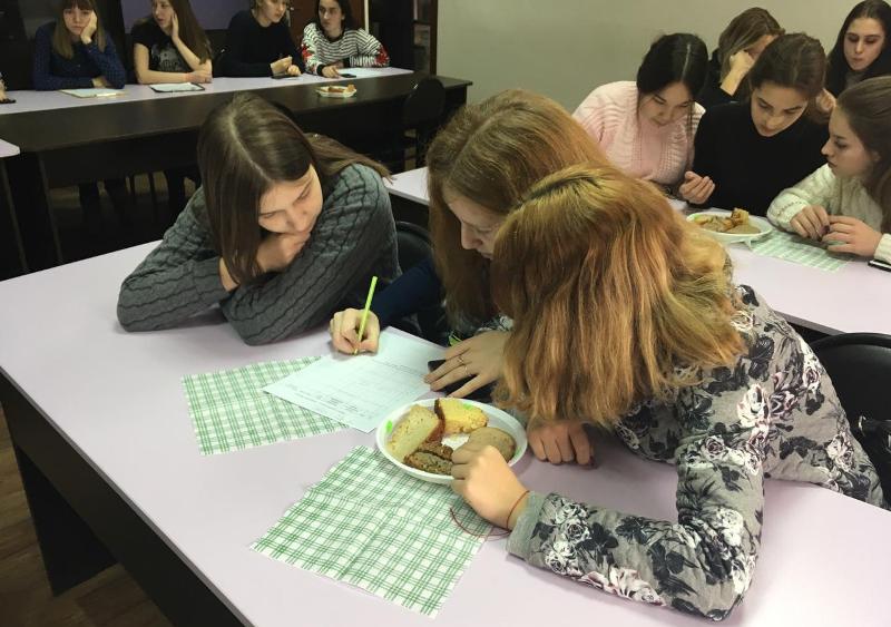 Студенты первого курса с удовольствием продегустировали образцы хлеба и оценили его качество, используя органолептический метод.