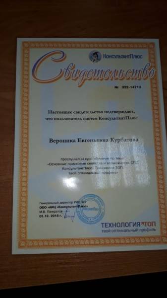 Все студенты группы ЭФ 232 к успешно прошли курсы КонсультантПлюс и получили Свидетельства. Поздравим и порадуемся за них!