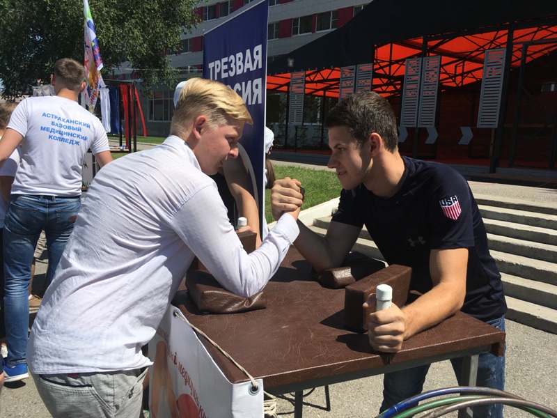 Интересно было наблюдать, когда наши студенты мерились силами по армрестлингу. Самым сильным оказался Кузин Ильяс, совсем не намного уступил ему Иванов Денис, замкнул тройку сильнейших Рыбашлыков Артем.