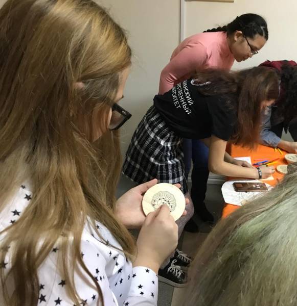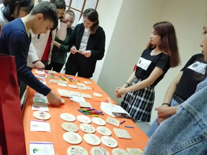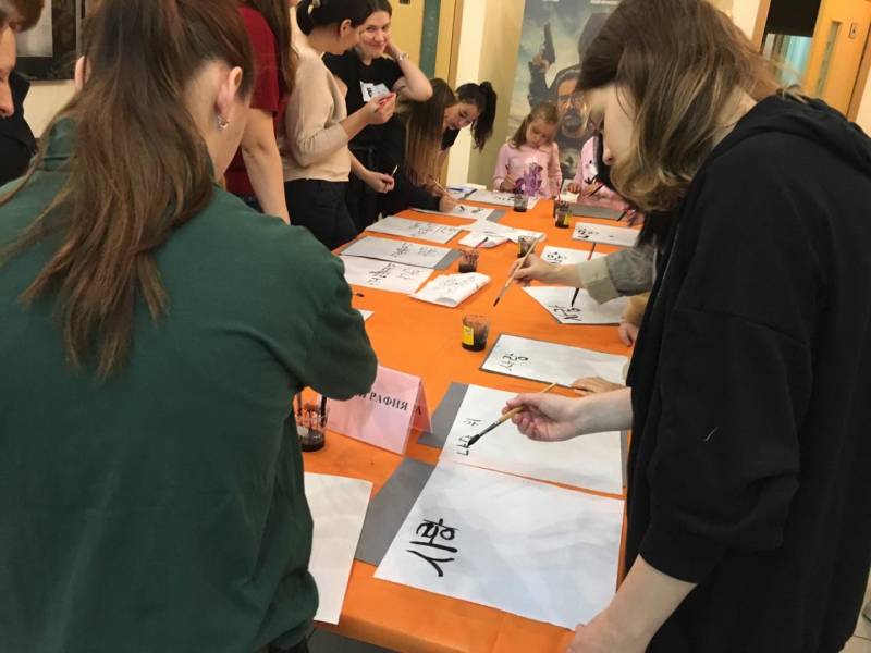 Обучающиеся приняли участие в мастер-классах по раскрашиванию деревянных подставок и написанию корейских иероглифов.