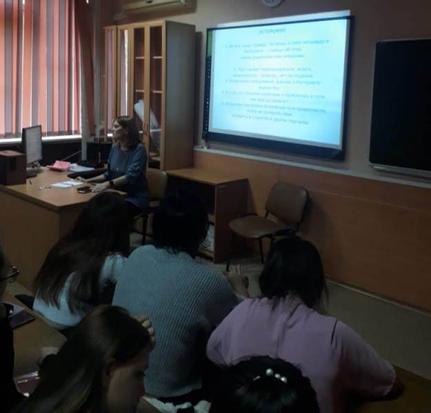 Для студентов был организован просмотр видеоролика, в котором рассказывалось о правилах пользования социальными сетями, методах защиты от вредоносных программ. Также были даны советы по безопасности работы в общедоступных сетях Wi-fi.