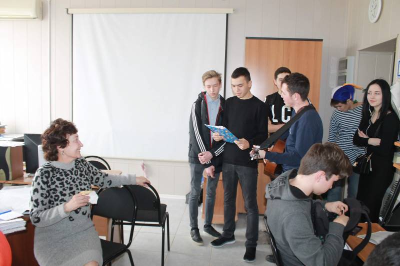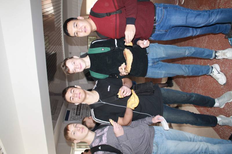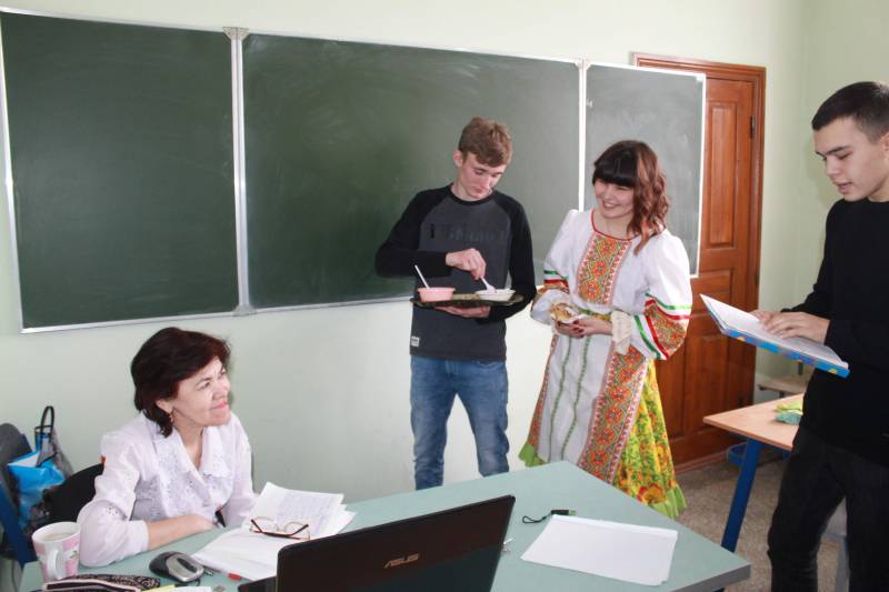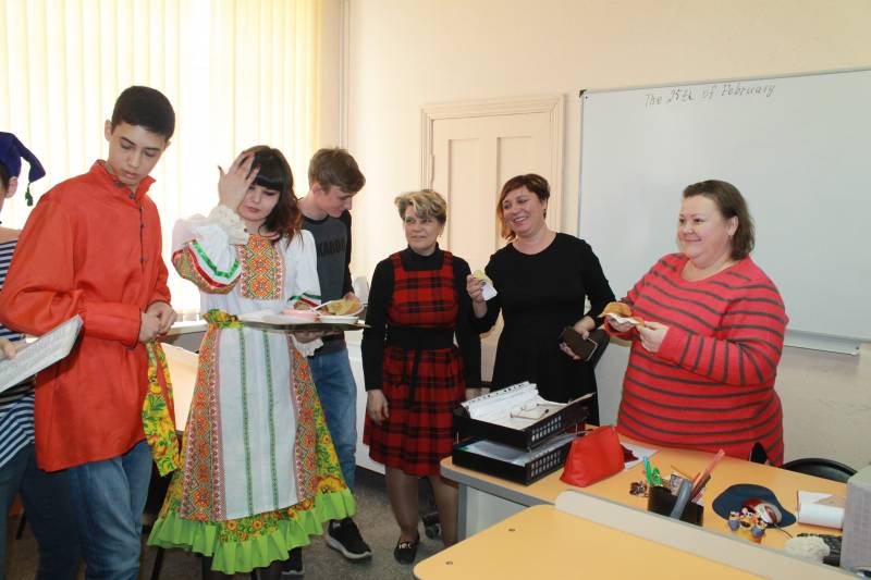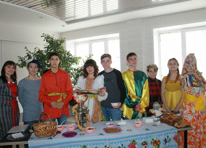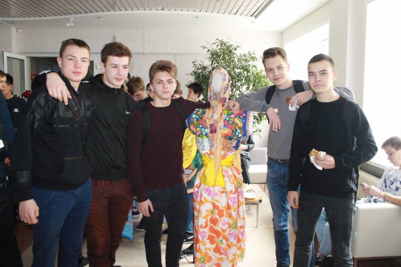 В холле главного корпуса был организован стол с блинами, самоваром и, конечно, куклой Масленицей. Любой желающий мог получить блин за загадку от костюмированных героев. Студенты создали праздничное настроение пением частушек под гитару. Все присутствующие получили массу весёлых и добрых эмоций.