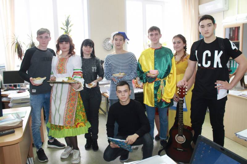 Студенты механического отделения групп ОСА 221, ОСА 121, СЭН 101 совместно со своими кураторами Ефимовой Е.А., Ляпиной Е.А. и Кусмарцевой Е.И. поздравили всех студентов, преподавателей и сотрудников колледжа с началом масленичной недели.