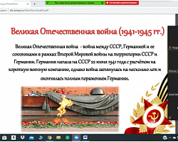 9 мая 2020 года Российская Федерация отметила 75-летие Победы в Великой Отечественной войне. Ценой миллионов жизней люди нашей страны остановили фашизм, подарили мир и свободу будущим поколениям. Победить удалось благодаря мужеству, массовому героизму воинов советской армии на поле боя, непреклонной воле к победе и пламенному патриотизму партизан и участников подполья в тылу захватчиков, трудовому подвигу работников тыла, объединённым усилиям наших соотечественников всех национальностей и вероисповеданий. И сегодня самая главная задача – сохранить историческую память о героическом подвиге советского народа, о его единстве перед лицом неприятеля.