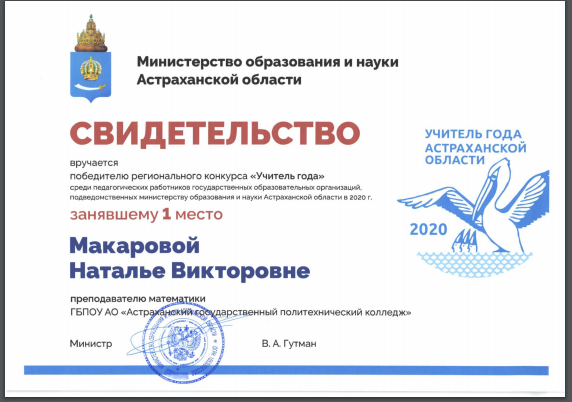 Как отметила победитель регионального конкурса «Учитель года» среди педагогических работников государственных образовательных организаций, подведомственных министерству образования и науки Астраханской области в 2020 г, Наталья Викторовна Макарова: «Конкурс «Учитель года» позволяет каждому педагогу продемонстрировать свой опыт, повышает престиж профессии. Это не только конкурс, а настоящая школа профессионального мастерства, возможность учиться у своих коллег, уникальная площадка для обмена опытом, интересными идеями и инновационными подходами».