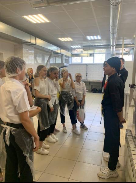 Профориентация проходила в практической плоскости, где под руководством опытных наставников: мастера производственного обучения Масловой М.А., преподавателя спец.дисциплин Клубковой Н.Ф и студентов 2 курса специальности «Поварское и кондитерское дело», школьники приобрели необходимые навыки в приготовлении блюда.