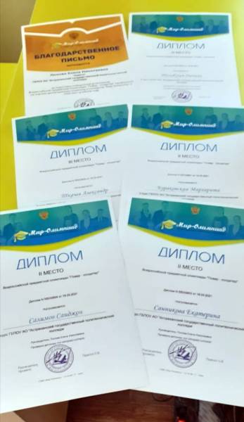 Студенты группы ПК-282 стали победителями Всероссийской предметной олимпиады «Повар-Кондитер», проводимой на портале дистанционных олимпиад и конкурсов «Мир-Олимпиад».