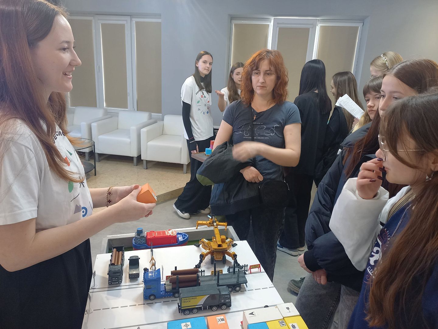 • по специальности «Информационные системы и программирование» поделились приёмами программирования робота-погрузчика;