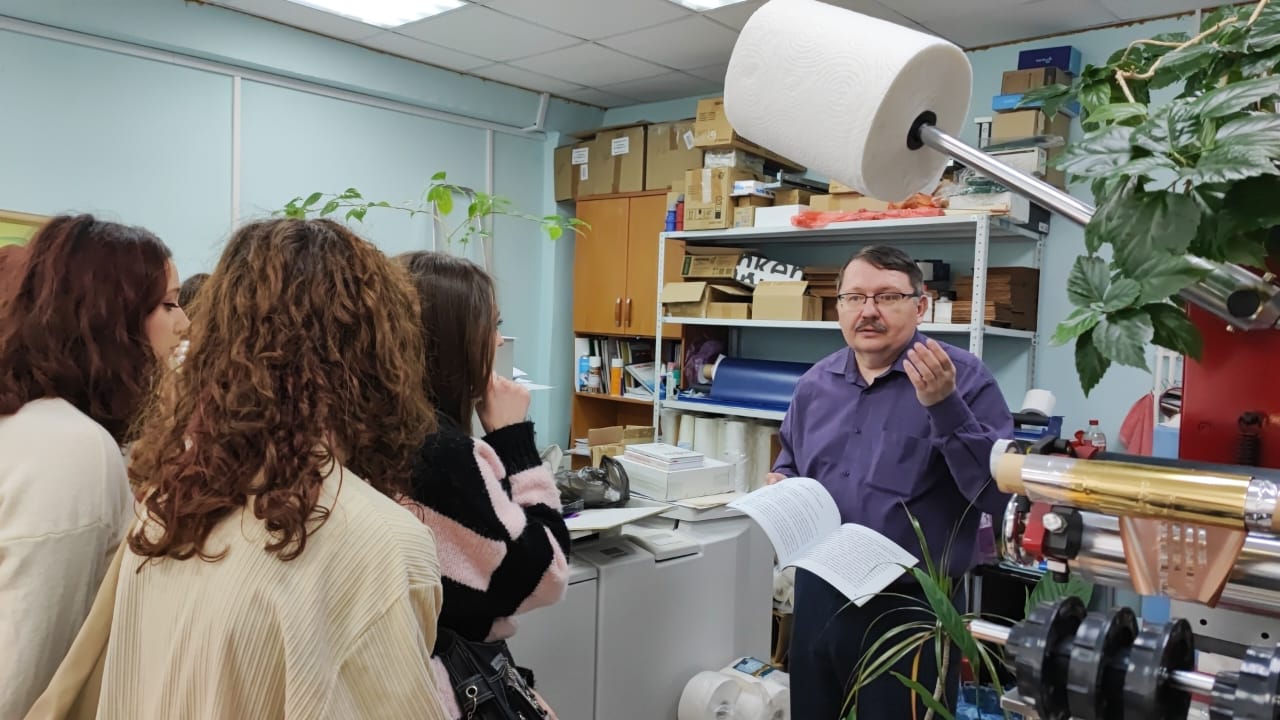 27.03.25 студенты выпускной группы специальности «Графический дизайнер» – ГРД-4109 – в сопровождении преподавателя Скриповой И.Г. посетили Астраханскую цифровую типографию по адресу: г. Астрахань, пл. Карла Маркса, 33., с целью ознакомления с процессом работы над продукцией.