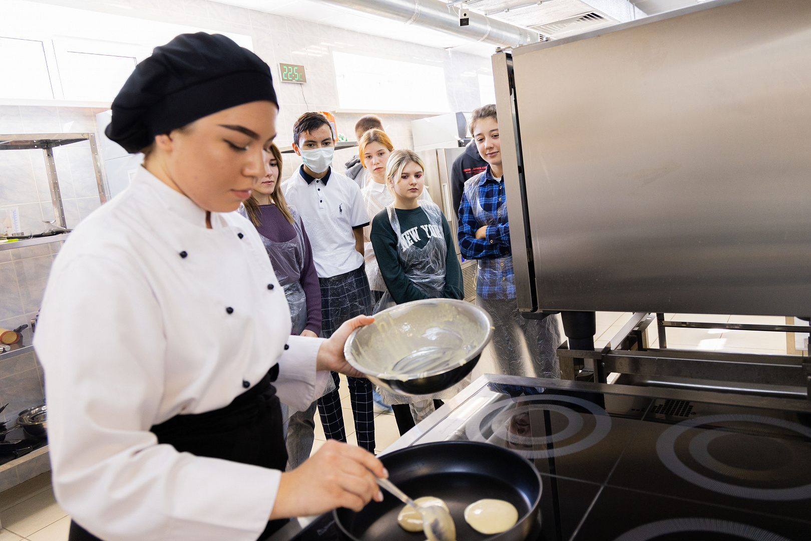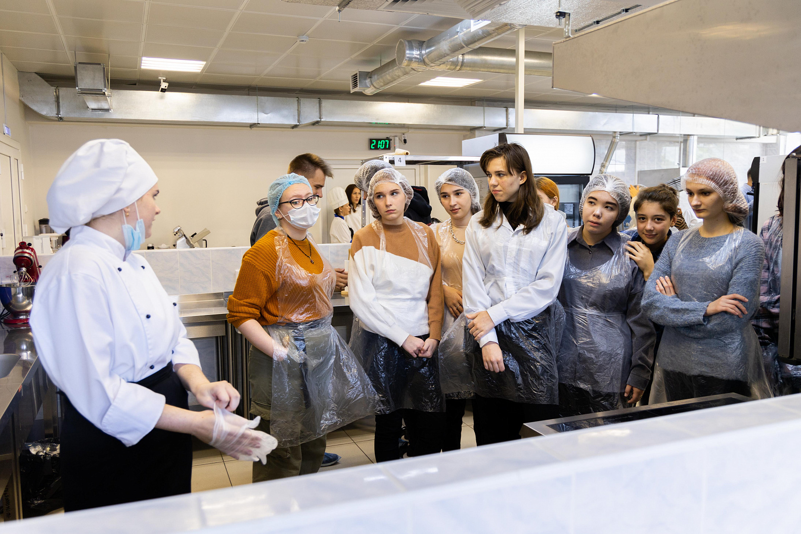 «Прикоснулись» школьники и к поварскому делу. В лаборатории под названием «Технология кулинарного и кондитерского производства» ребята пробовали себя в роли поваров. Под шефством мастеров производственного обучения и студентов они учились работать с тестом, готовили несложные блюда и выпечку, а также узнали о секретах подачи готовых блюд и сервировке стола.