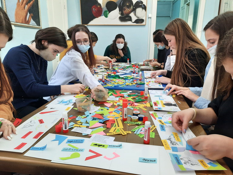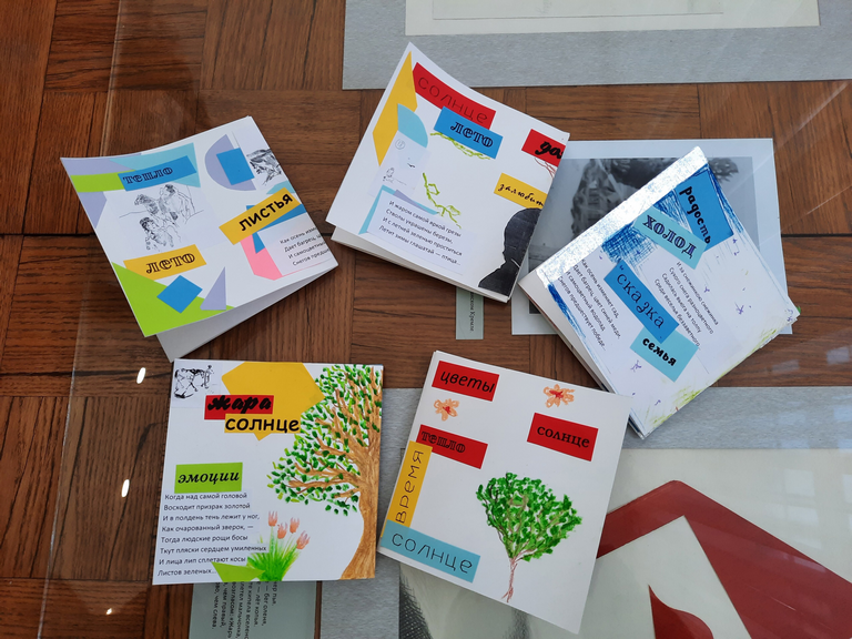 После знакомства с подобными работами студенты АГПК приступили к созданию собственных футуристических книг, посвящённых временам года. Подбор материалов был велик: неологизмы Велимира Хлебникова; миниатюрные картинки с изображением рисунков художника Степана Ботиева, созданные им по произведениям поэта; разнообразные декоративные элементы и художественные материалы, которые студенты активно нарезали и клеили.