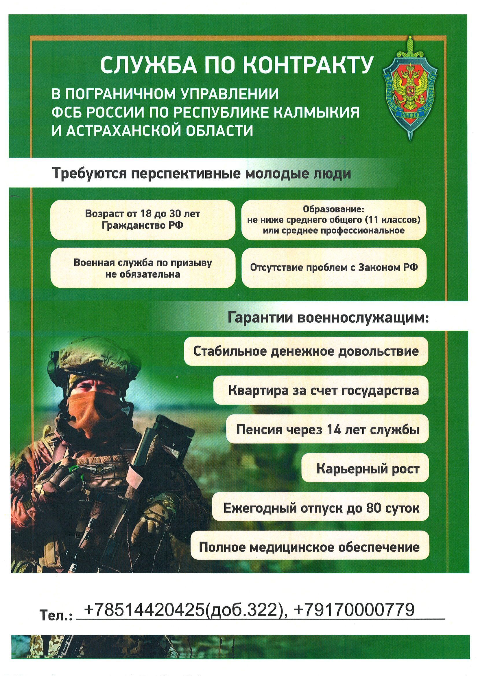ВАКАНСИИ: Пограничное управление ФСБ России по Республике Калмыкия и Астраханской области объявляет отбор кандидатов на службу по контракту