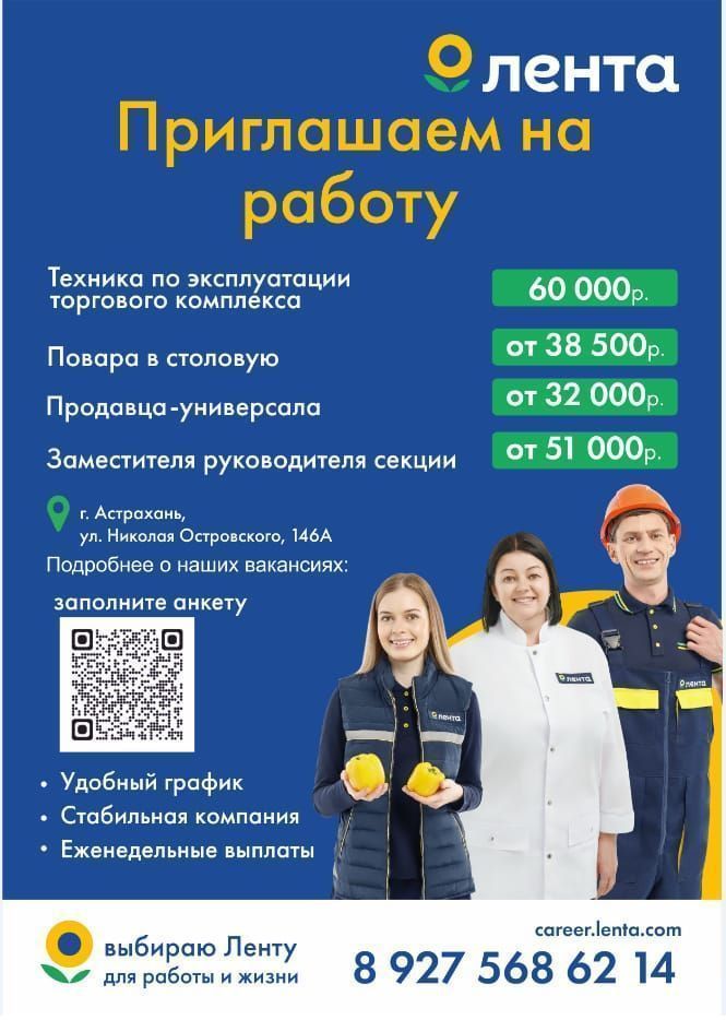 ВАКАНСИИ: В МУП г. Астрахани "Астрводоканал" имеются вакантные должности: юрист-консул, специалист (по разностки квитанций), специалист (по претензионной работе), инженер 2 категории.Необходимо образование средне-специальное, заработная плата: юрист -консул от 22000 руб., специалист (по разностки квитанций) -от 20 000 руб., специалист (по претензионной работе)- от 22 000 руб., инженер 2 категории от 20 000 руб. пятидневная рабочая неделя с 8.00 до 17.00 ( с 12.00 до 13.00 обед), соц.пакет. Опыт работы не обязателен. Обращаться по телефону: 49-76-10 (отдел кадров),